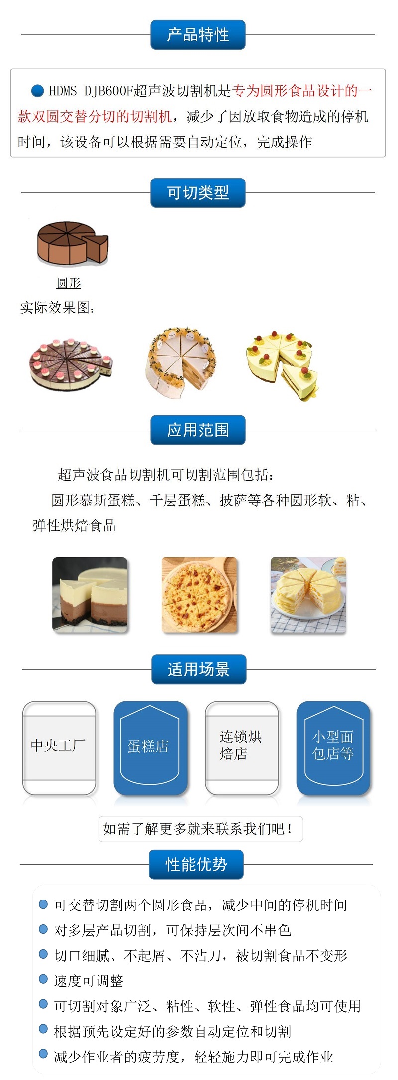 該設(shè)備配備雙把超聲波刀片,既可切方蛋糕,也可同時切兩個圓蛋糕,效率更高